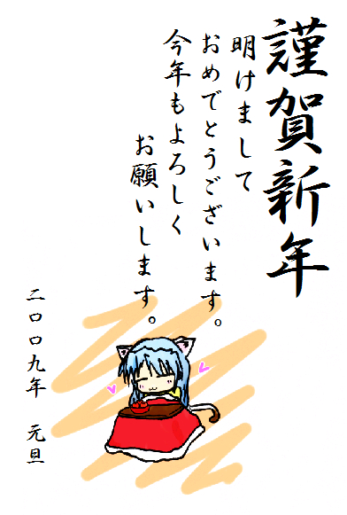 今年は丑年ですがぬこの絵です。